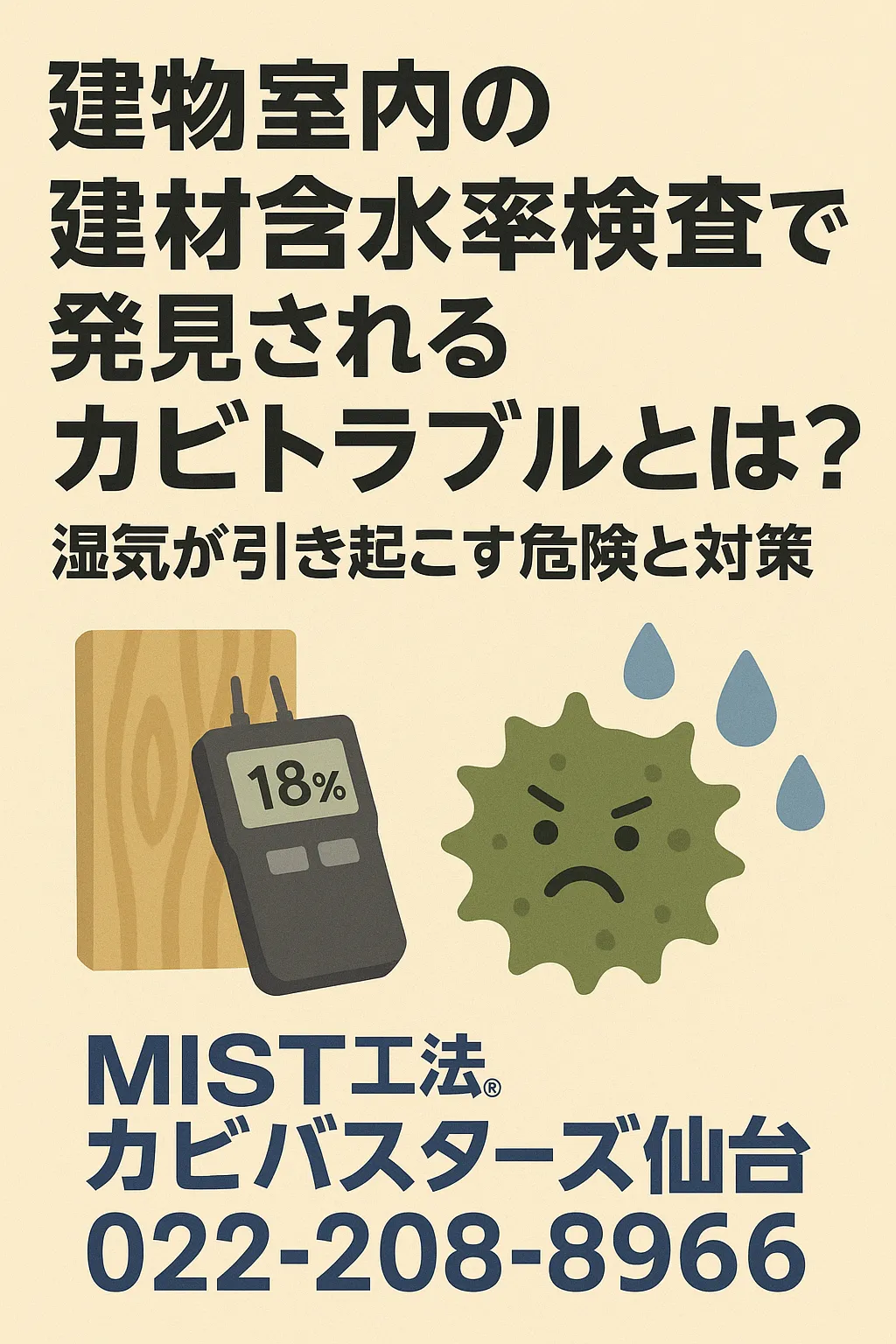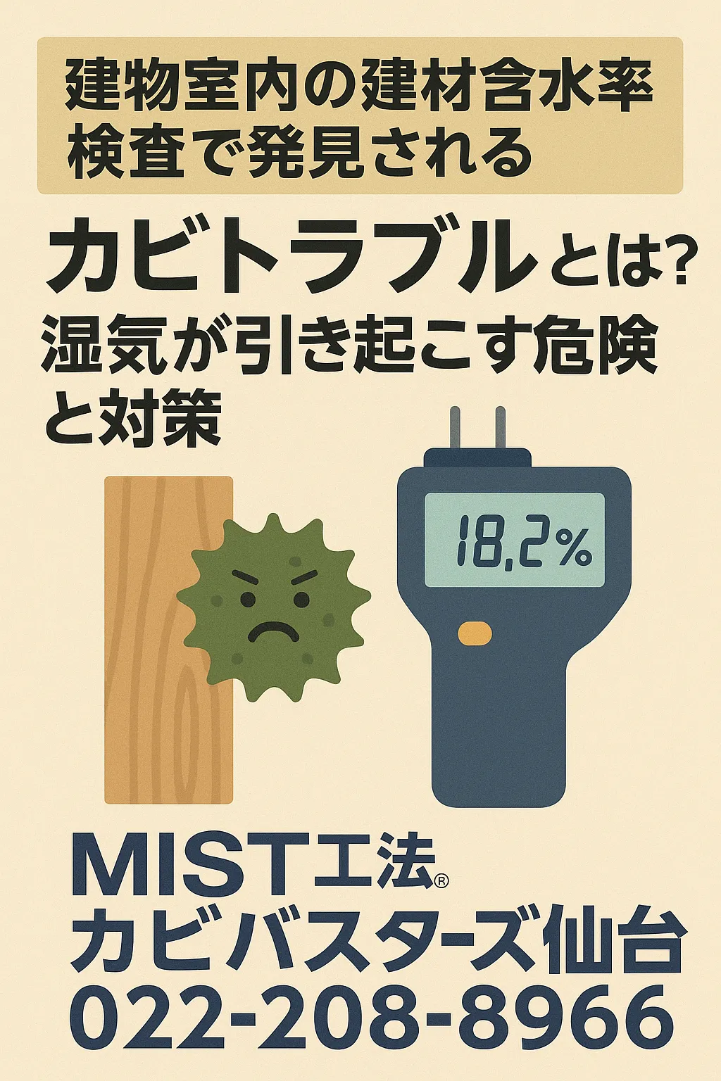 カビの問題は、目に見えてからでは遅いことが少なくありません。含水率検査は、健康被害を未然に防ぎ、建物の寿命を延ばすための大切なチェックです。もし「壁がカビ臭い」「結露が多い」と感じたら、早めに検査を受けることをおすすめします。仙台でカビや湿気にお悩みの方は、ぜひMIST工法®カビバスターズ仙台へご相談ください🌿✨