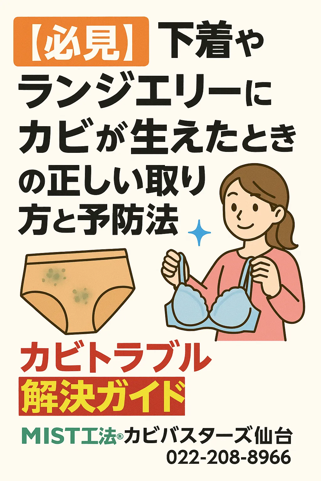 そして、もし「自分ではどうにもならない」「下着だけでなく他の衣類や収納までカビが広がってしまった」と感じたときは、専門的な視点からアドバイスを受けるのも一つの方法です。仙台エリアにお住まいの方なら、MIST工法®カビバスターズ仙台にご相談いただければ、安心して解決への一歩を踏み出すことができます📞🌿。