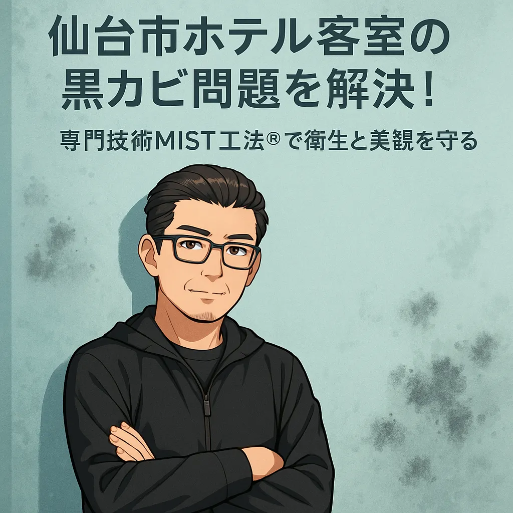 だからこそ今、求められているのは“再発を許さない根本対策”です。**カビバスターズ仙台のMIST工法Ⓡ**では、壁内部まで浸透したカビを安全に除去し、再発防止層を形成することで「衛生・健康・経営の三方よし」を実現します。見えないところで進行するカビ被害を未然に防ぎ、宿泊者に「安心して泊まれる空間」を提供すること――それが、ホテル経営の信頼を守る最も確実な方法です。