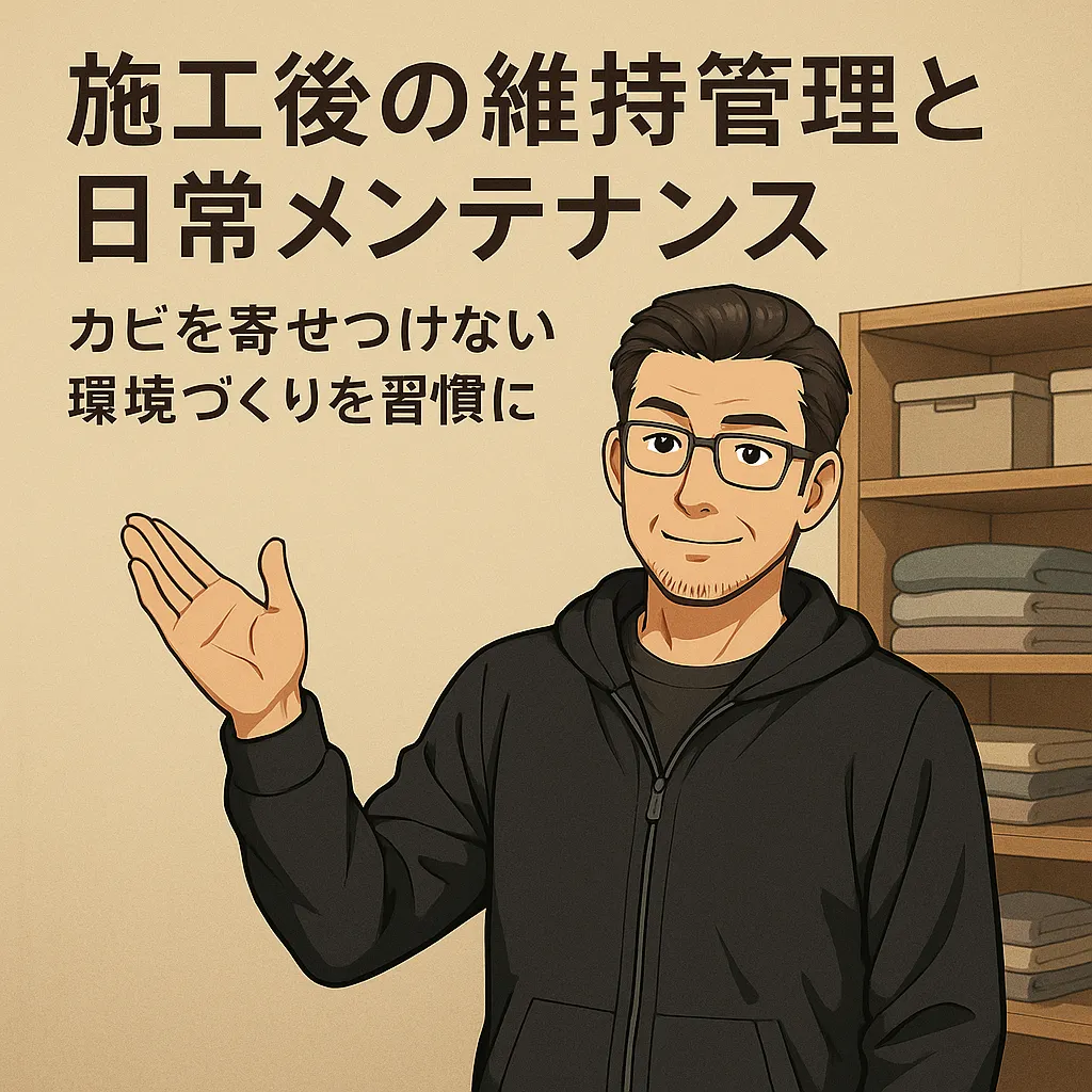 カビの除去施工を行い、クローゼットや部屋が清潔に戻ったとしても、それは“ゴール”ではありません。むしろ、そこからがスタートです。カビの発生を防ぎ、美しい状態を長く維持するためには、日常的な環境管理とメンテナンスの習慣化が欠かせません。せっかく専門施工で根本除菌を行っても、生活環境の湿気やホコリを放置してしまえば、再びカビが発生するリスクはゼロにはならないのです。