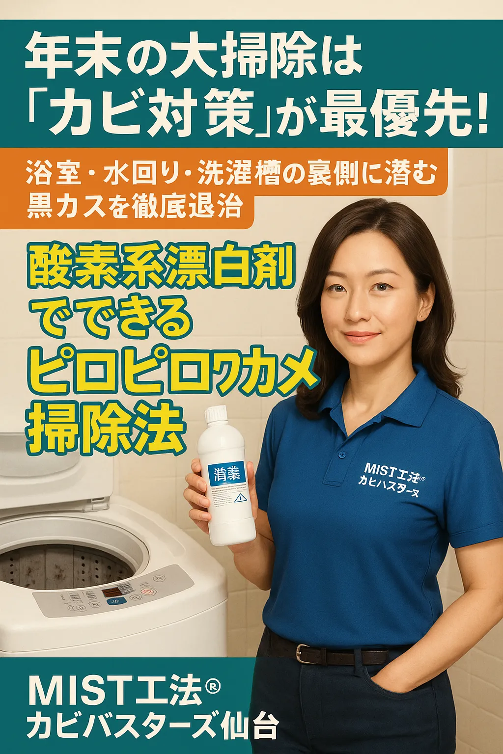 黒いカス=カビ!塩素系と酸素系の正しい使い分け&知らないと危険な洗濯槽の裏側の実態を詳しく紹介。手に負えない場合は東北全県対応のMIST工法®カビバスターズ仙台へ!