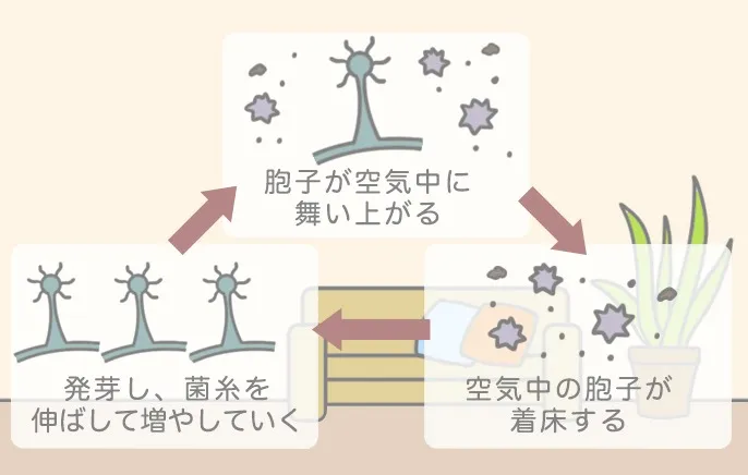 この3つのバランスが崩れると、カビが定着しやすくなります。