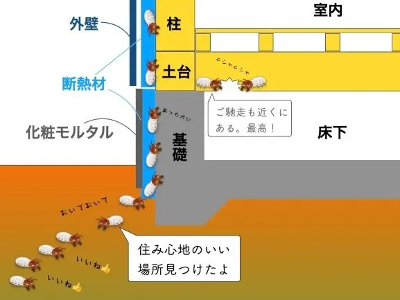 さらに問題なのは、この湿気環境がシロアリにとっても非常に好ましいという点です。