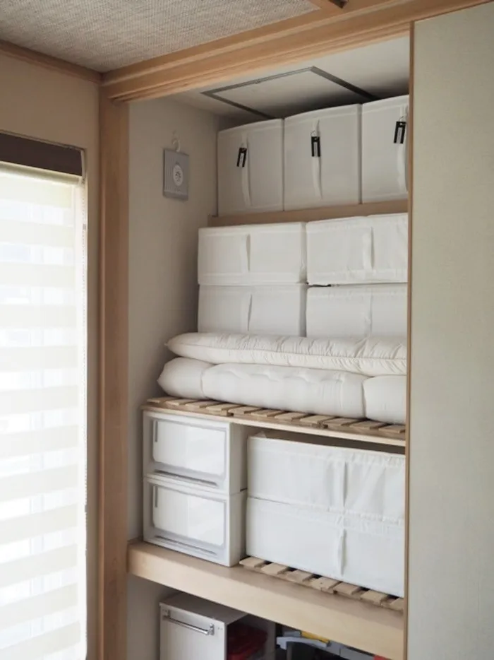 押入れの場合は、すのこを活用することが非常に有効です。床面に直接物を置かず、空間をつくることで下部の湿気を逃がすことができます。また、布団は定期的に上げ下ろしを行い、湿気を外に逃がすことが重要です。長期間同じ状態で収納し続けることが、カビ発生の大きな原因となります。