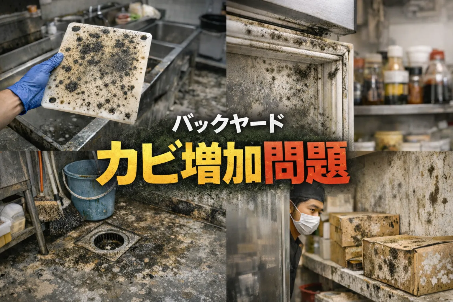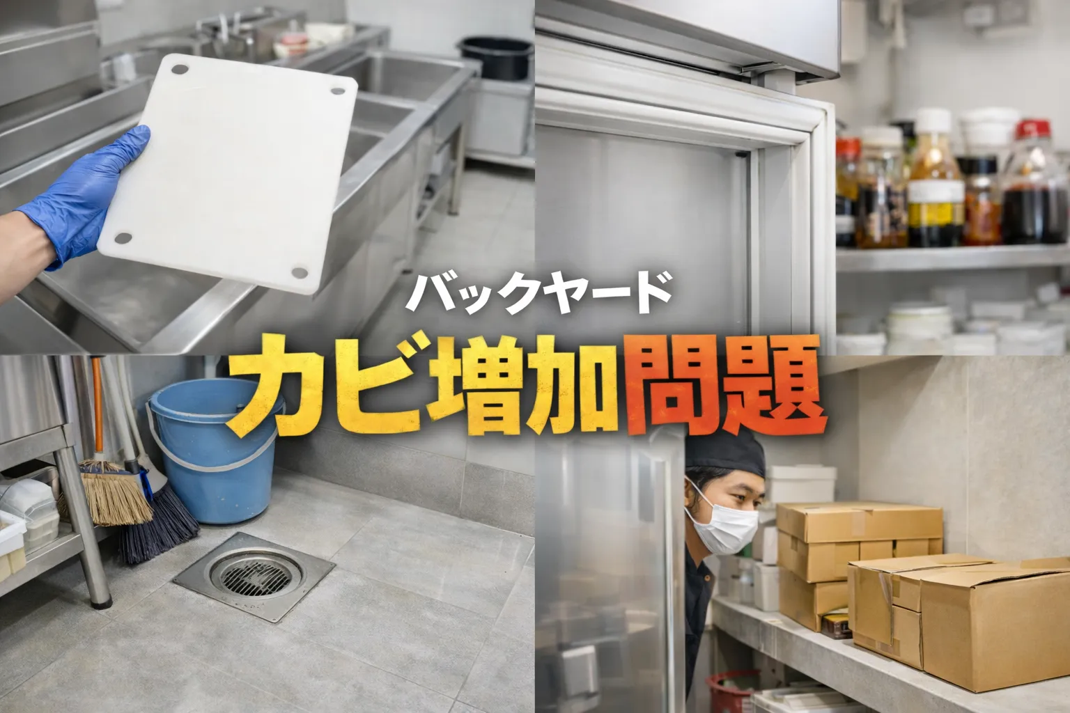 重要なのは、これらの要因が単独ではなく同時に発生しているという点です。気候による湿度上昇、構造による通気不良、営業による水分発生、そして管理不足が重なることで、バックヤードは常に「カビが発生し続ける環境」になってしまいます。そのため、単なる清掃や一時的な除去では根本的な解決にはならず、原因そのものに対する対策が求められるのです。